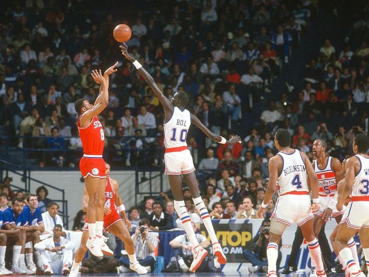 Before there was Yao Ming, there was Manute Bol. At 7’7”, Bol didn’t exactly have a diverse skill set, but his role on the court exploded as a shot-blocking specialist. In fact, Bol accrued more blocked shots (2,086) over his career than he scored points (1,599).